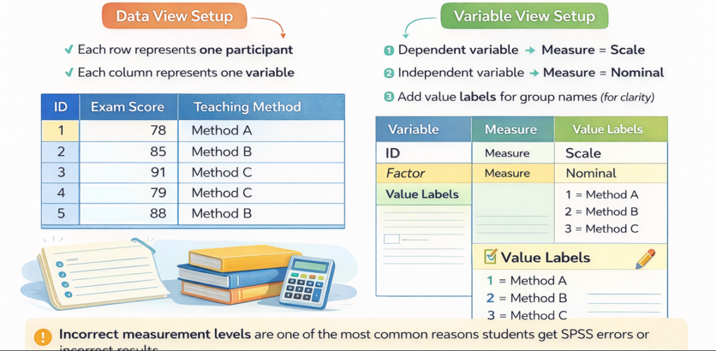 Incorrect measurement levels are one of the most common reasons students get SPSS errors or incorrect results.